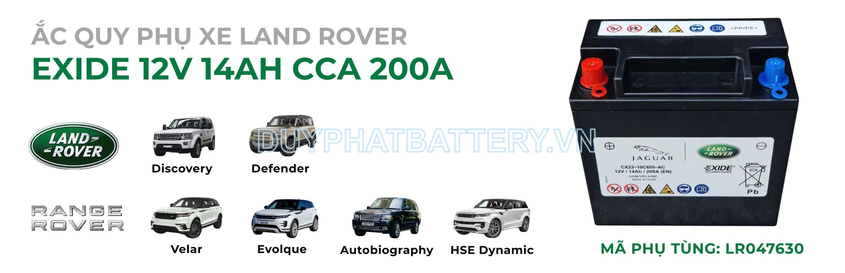 Các xe tương thích ắc quy phụ Landrover LR047630 | AGM 12V 14Ah CCA 200A