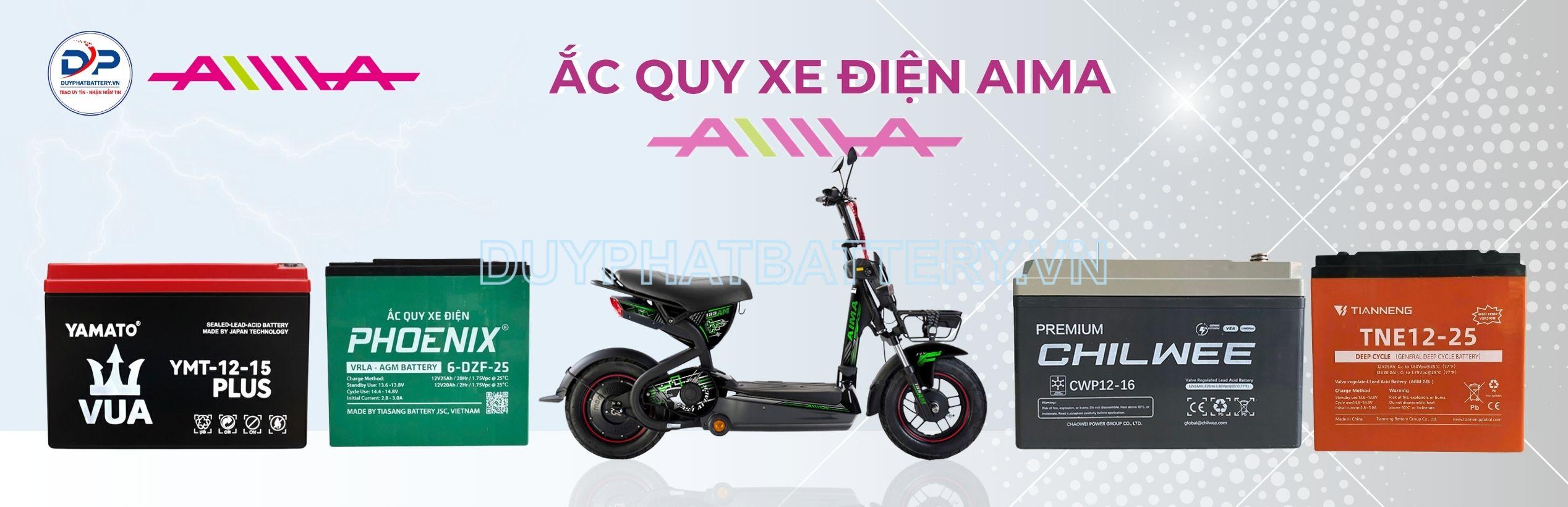 Nếu bạn đang tìm kiếm ắc quy xe điện Aima có hiệu suất cao và đáng tin cậy cho chiếc xe điện của mình, bạn đã đến đúng nơi. Với đa dạng các loại ắc quy xe điện Aima để bạn lựa chọn, Ắc quy Duy Phát sẽ hỗ trợ bạn. Nhiều thương hiệu ắc quy xe điện nổi tiếng hiện nay như: PHOENIX, TIANNENG, YAMATO, XUPAI, PINACO, CHILWEE,... dùng cho các dòng xe điện Aima của chúng tôi được hỗ trợ giao hàng nhanh chóng, lắp đặt tận nơi miễn phí, bảo hành 9 tháng và đảm bảo hài lòng trong 60 ngày.