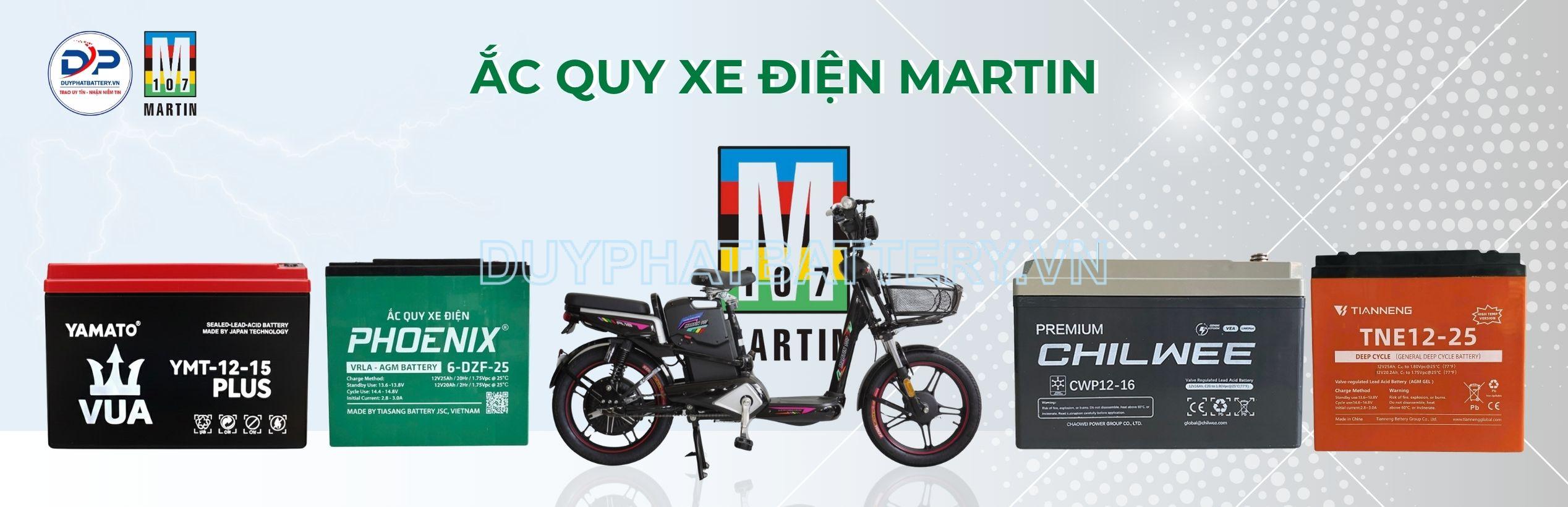 Nếu bạn đang tìm kiếm ắc quy xe điện Martin có hiệu suất cao và đáng tin cậy cho chiếc xe điện của mình, bạn đã đến đúng nơi. Với đa dạng các loại ắc quy xe điện Martin để bạn lựa chọn, Ắc quy Duy Phát sẽ hỗ trợ bạn. Nhiều thương hiệu ắc quy xe điện nổi tiếng hiện nay như: PHOENIX, TIANNENG, YAMATO, XUPAI, PINACO, CHILWEE,... dùng cho các dòng xe điện Vinfast của chúng tôi được hỗ trợ giao hàng nhanh chóng, lắp đặt tận nơi miễn phí, bảo hành 9 tháng và đảm bảo hài lòng trong 60 ngày.