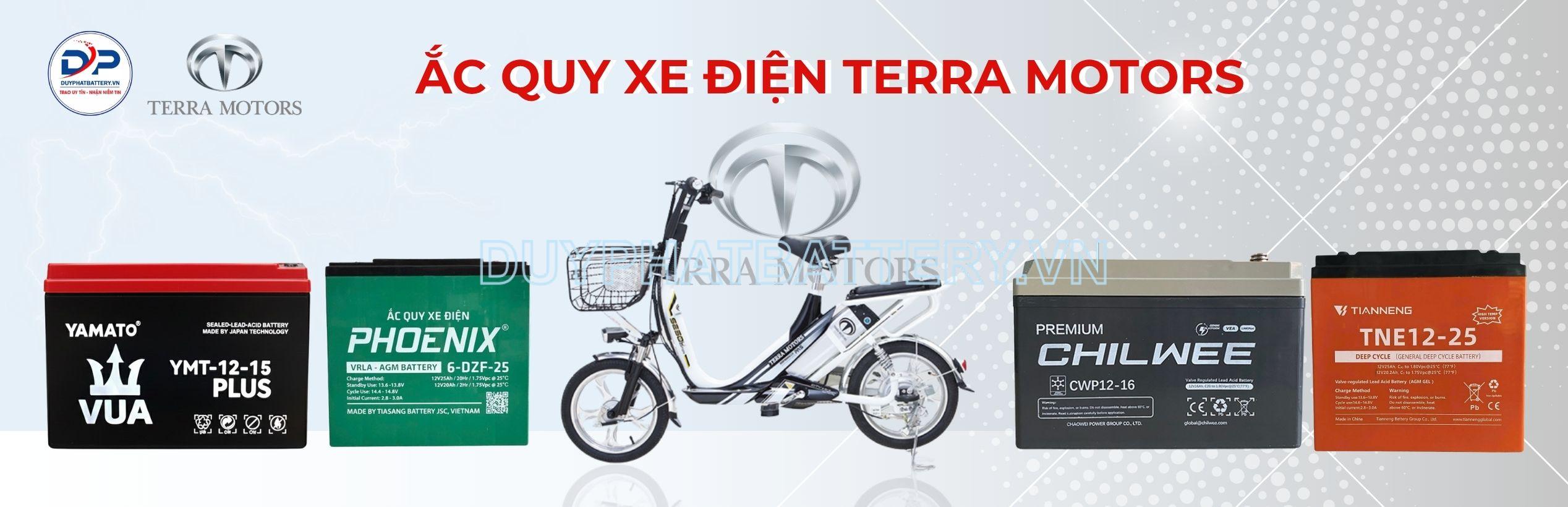 Nếu bạn đang tìm kiếm ắc quy xe điện Terra Motors có hiệu suất cao và đáng tin cậy cho chiếc xe điện của mình, bạn đã đến đúng nơi. Với đa dạng các loại ắc quy xe điện Terra Motors để bạn lựa chọn, Ắc quy Duy Phát sẽ hỗ trợ bạn. Nhiều thương hiệu ắc quy xe điện nổi tiếng hiện nay như: PHOENIX, TIANNENG, YAMATO, XUPAI, PINACO, CHILWEE,... dùng cho các dòng xe điện Terra Motors của chúng tôi được hỗ trợ giao hàng nhanh chóng, lắp đặt tận nơi miễn phí, bảo hành 9 tháng và đảm bảo hài lòng trong 60 ngày.