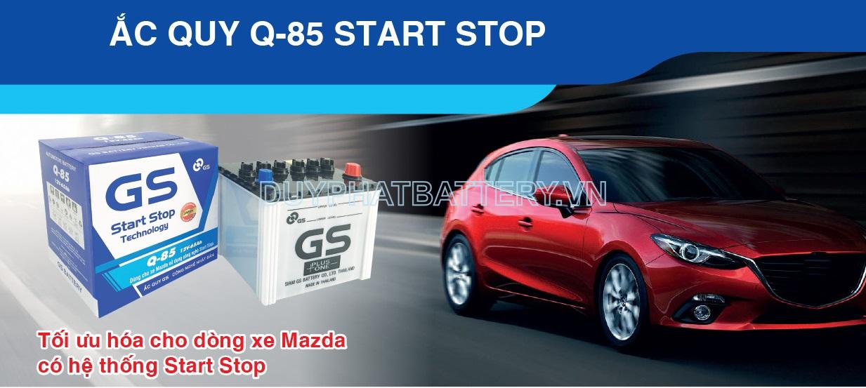 Bình ắc quy GS Q85 (12V-65Ah) dùng cho các dòng xe Mazda I-Stop: Mazda 2, Mazda 3, Mazda 6, Mazda CX-5, Mazda CX-8, Mazda CX-9, Mazda CX-30.