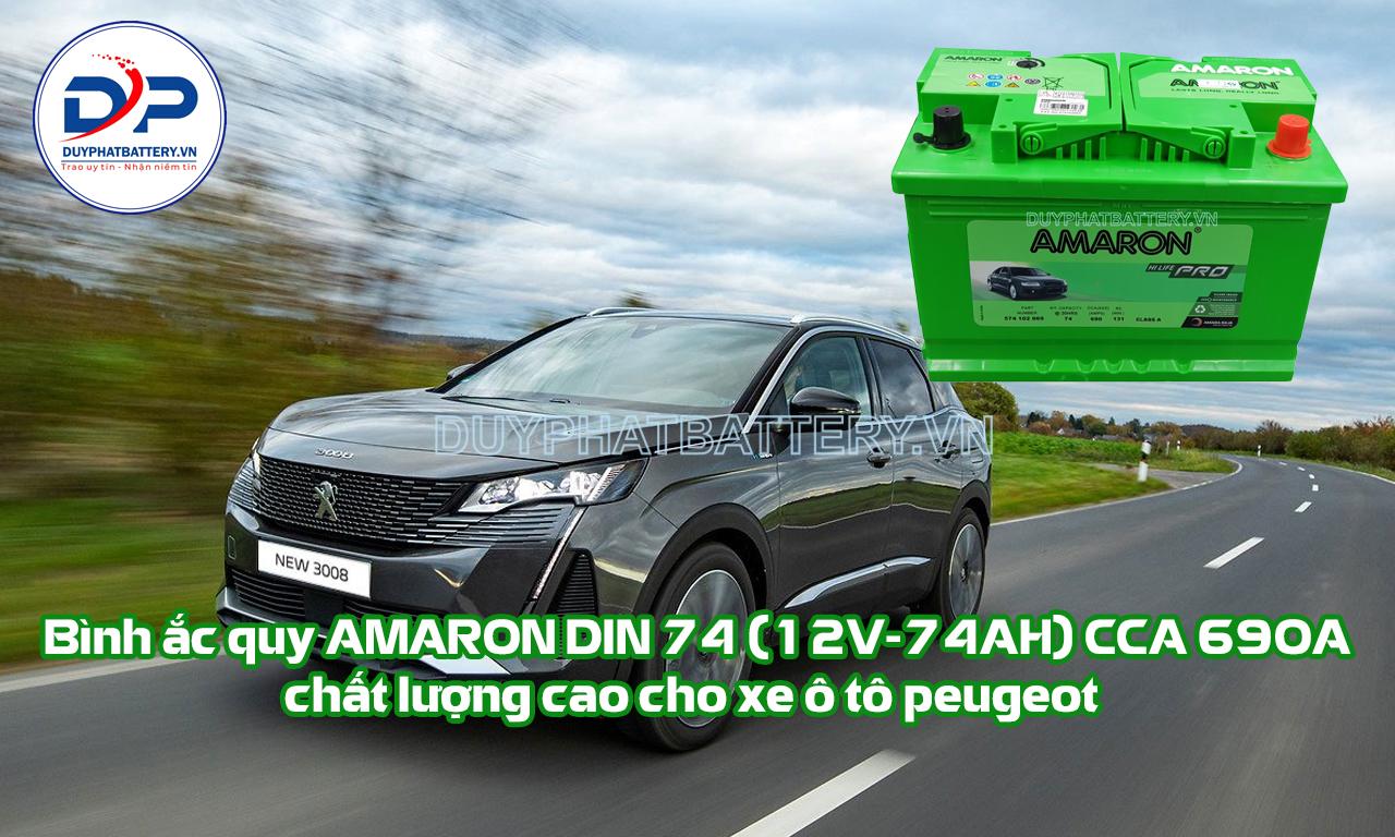 - Bình ắc quy AMARON DIN 74 (12V-74AH) được thiết kế đặc biệt cho xe ô tô Peugeot.