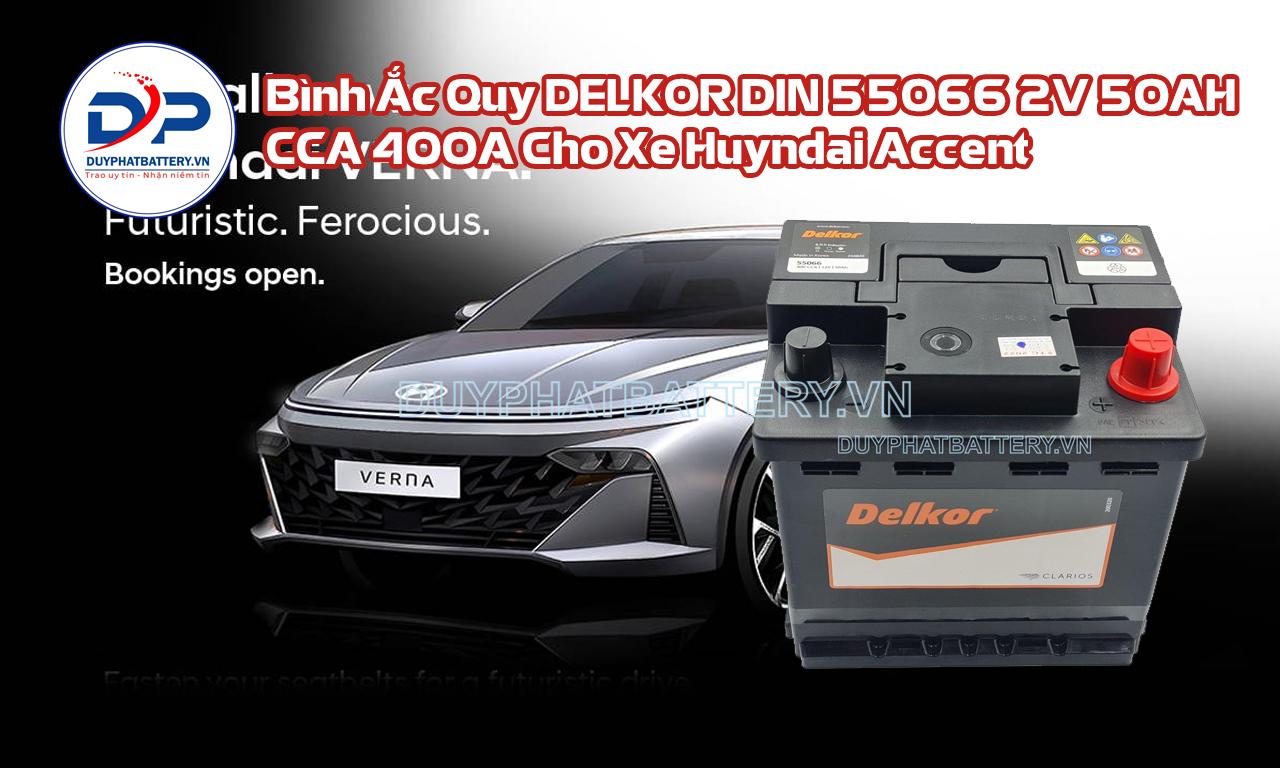 Bình Ắc Quy DELKOR DIN 55066 12V 50AH CCA 400A Cho Xe Huyndai Accent