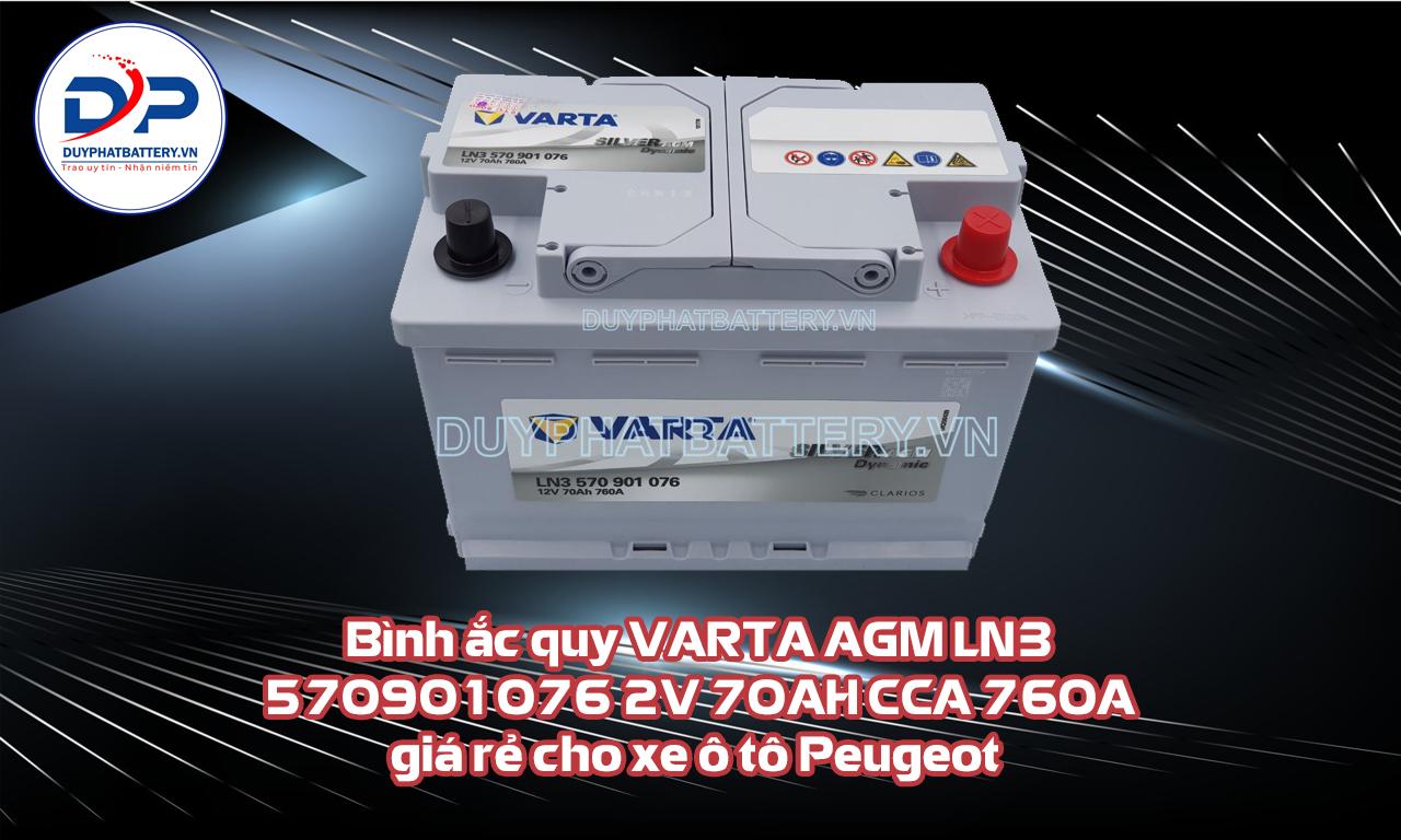 Bình ắc quy VARTA AGM LN3 570901076 12V 70AH CCA 760A giá rẻ cho xe ô tô Peugeot