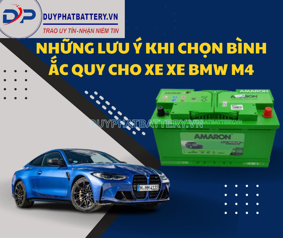 Bài viết này sẽ giúp bạn hiểu rõ hơn về những lưu ý khi chọn bình ắc quy cho chiếc xe BMW M4 của mình. Xe BMW M4 là một trong những mẫu xe thể thao hạng sang phổ biến trên thị trường, vì vậy việc chọn bình ắc quy phù hợp đóng vai trò quan trọng để đảm bảo hoạt động ổn định của xe.